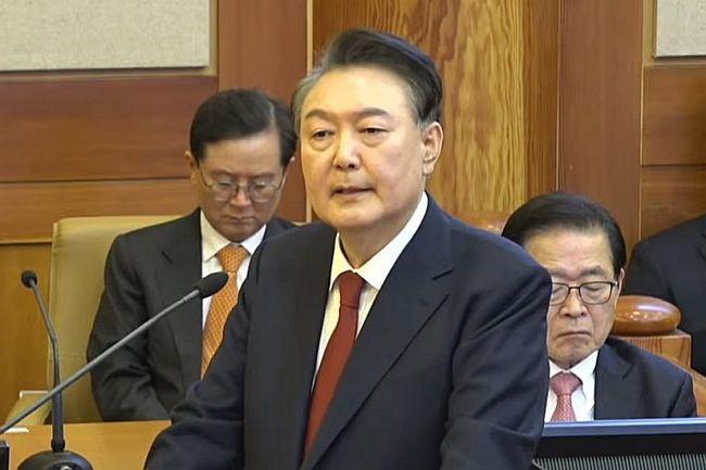 윤석열 대통령이 지난 25일 서울 종로구 헌법재판소에서 열린 윤 대통령 탄핵심판 11차 변론에서 최종 의견 진술을 하고 있다.